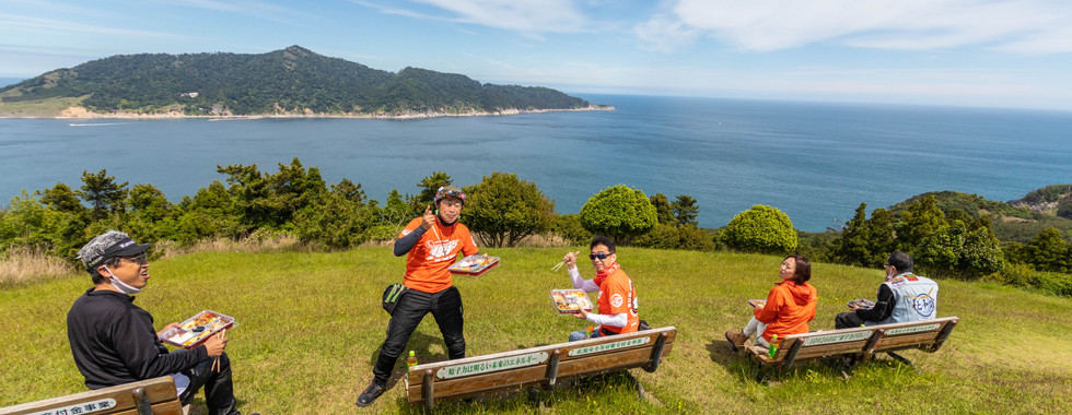 集合場所「サンファンヴィレッジ」から牡鹿半島の最南端「御番所展望公園」まで走り、御番所展望公園から見える金華山や田代島などが織りなす大パノラマの絶景を眺めながら、サンファンさんが車で運んで来てくれる「仕出し弁当」を食べ参加者との交流を深め、その後、海と空、そして新緑が美しい山が織りなす絶景のコバルトラインを走り「大六天展望駐車場」まで走り、そこで解散するという企画。